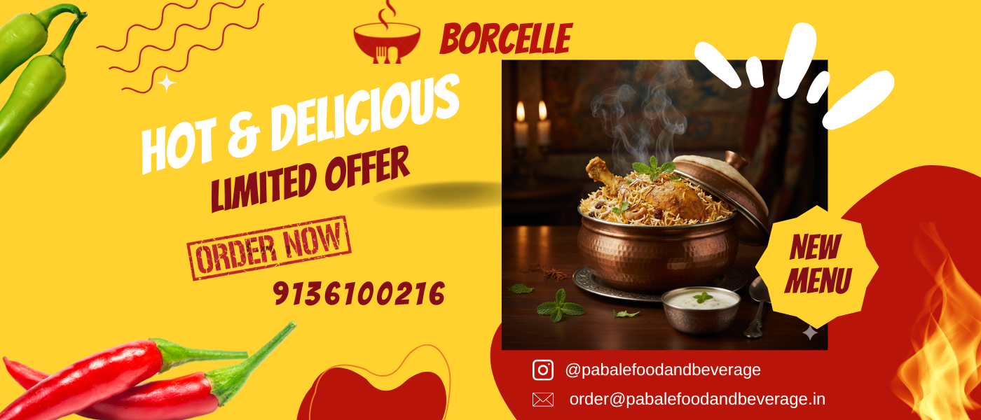 Pabale Food & Beverage brings you authentic, homely Maharashtrian and Hyderabadi flavors with freshly prepared meals, wholesome thalis, and specialty biryanis. From traditional Ghati-style vegetarian and non-vegetarian thalis to aromatic Chicken Hyderabadi Dum Biryani, every dish is crafted with care, quality ingredients, and delivered hot to your doorstep.