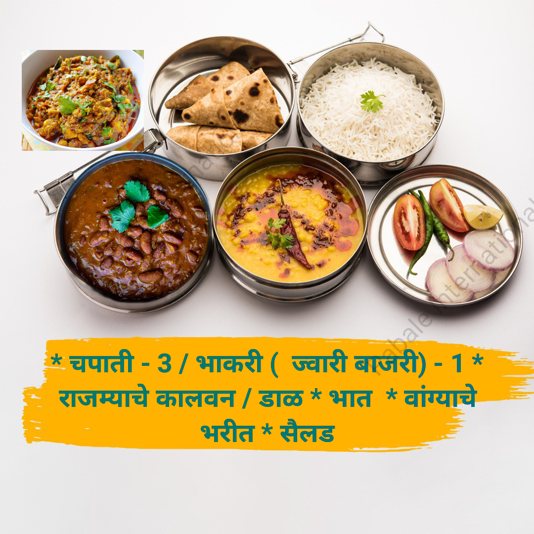 Indulge in a comforting and flavorful Ghati-style vegetarian meal featuring the classic combination of rajma curry and smoky brinjal bharit. Each component is freshly prepared with local masalas and cooked home-style for that authentic village taste.